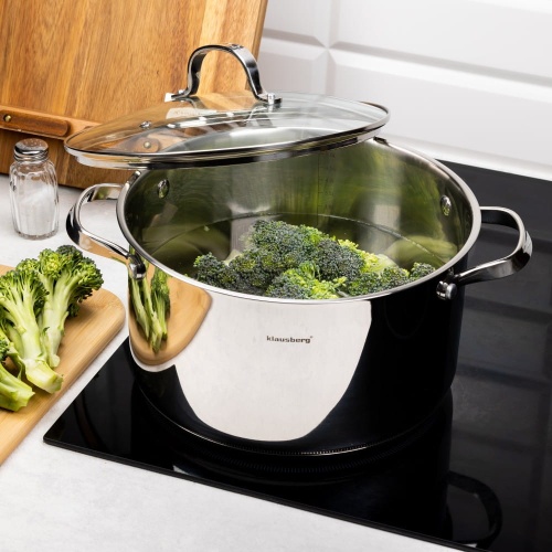 KLAUSBERG 3.3L pot with glass lid made of the highest quality 18/10 stainless steel. This type of steel guarantees a long service life and resistance to stains and discoloration.