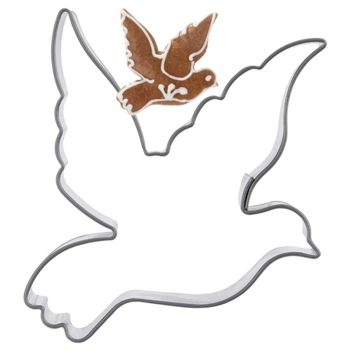 Confectionery cutter in the shape of a dove. Made of stainless steel. Perfect for cutting dough for gingerbread or cookies. Dishwasher safe.