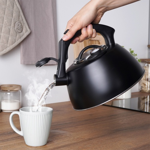 Steel kettle with whistle, gas induction, black MAT, with thermometer 3L VILDE 199005