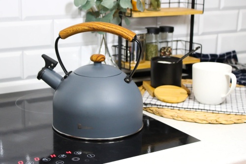 Steel kettle with whistle, traditional induction, 2.2L, matte gray BRUNBESTE BB-2461