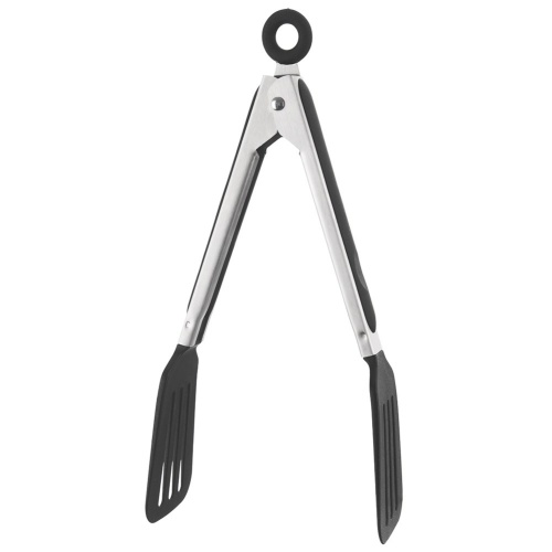 Tongs helpful when turning over fried, baked, grilled products and when serving dishes. They take up little space and can be locked.