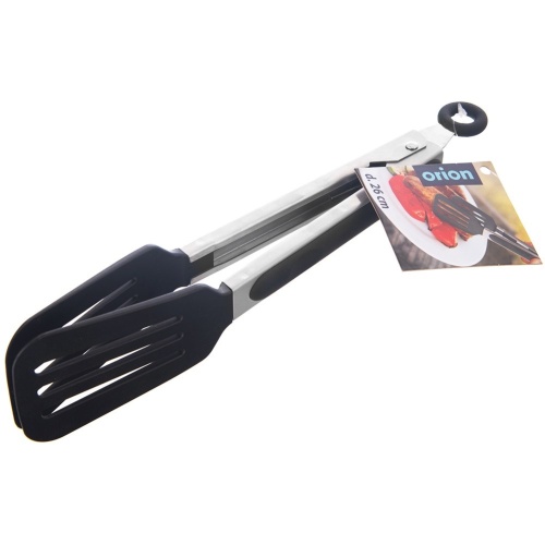 Kitchen tongs for universal use. Extremely useful in the kitchen and when grilling. They can be used to turn meat in a pan, remove cooked vegetables from boiling water, mix salads, serve food or even handle hot dishes from the oven. Comfortable to use and safe for delicate surfaces. The eyelet at the end of the pliers controls the lock and allows for hanging.Original product of the Czech brand Orion.Manufactured in accordance with European standards.