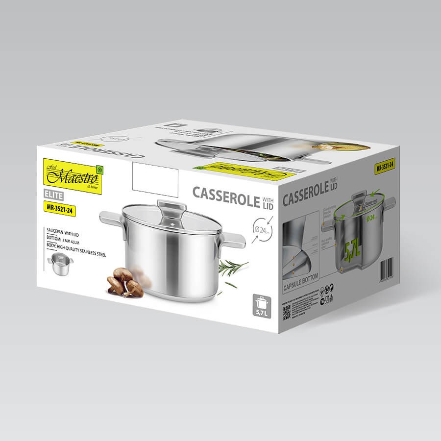 Steel pot with lid for induction gas 24cm 5.7L MAESTRO MR-3521-24