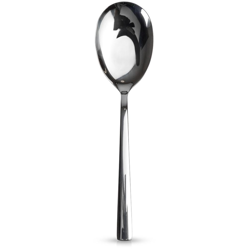 A salad spoon made of stainless steel in silver color. Ideal for mixing and applying salad. Suitable for washing in a dishwasher.