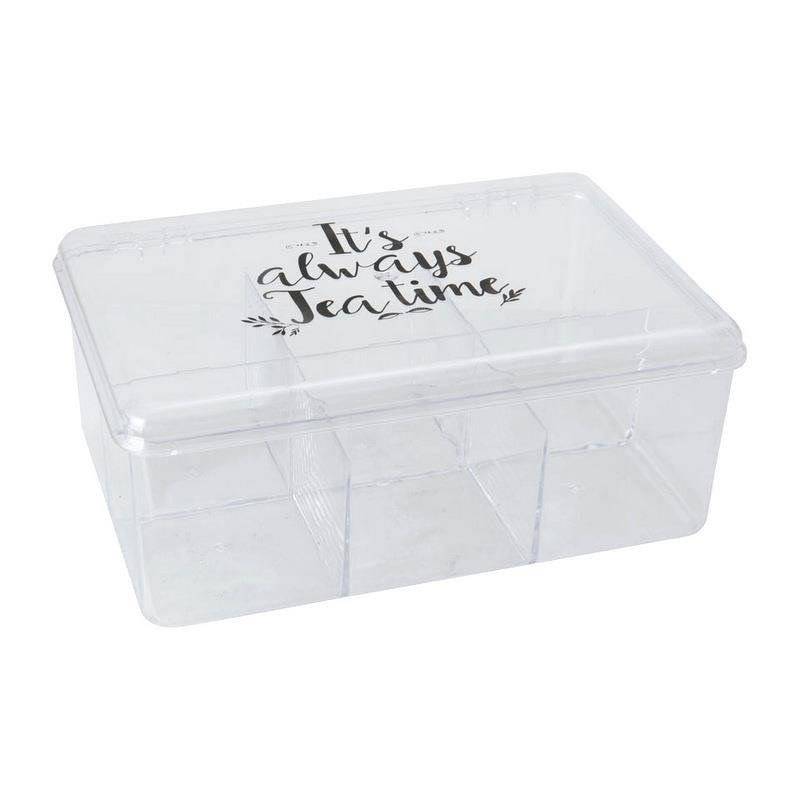 - PRACTICAL- Practical container for storing tea bags. The container has dimensions of 21.5 x 15 x 8.5 cm and has 6 compartments for tea inside.