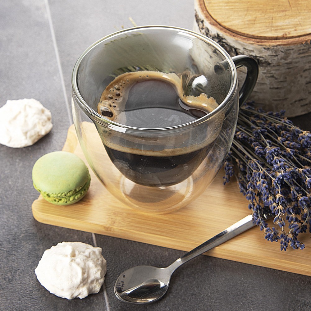 A set of two thermal glasses with a double wall, with a capacity of 280 ml. The inner part of the glass is heart -shaped. Perfect for coffee and tea.