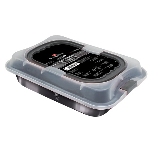 Open rectangular baking tin with titanium coating BERLINGER HAUS from the Carbon Pro cookware line. The titanium coating used is extremely hard, does not scratch easily, perfectly protects against rusting and, above all, facilitates the baking process. It comes with a lid with an additional handle, so you can cover the cake so it doesn't dry out or conveniently take it with you on a picnic.