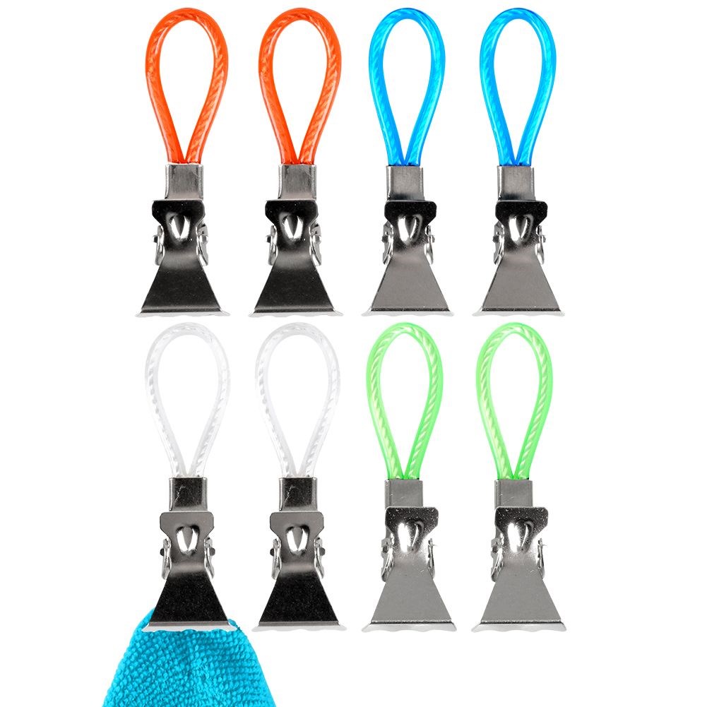 - PRACTICAL- A set of eight clips for towels and cloths. Each clip measures 5 x 1.5 x 0.5 cm.