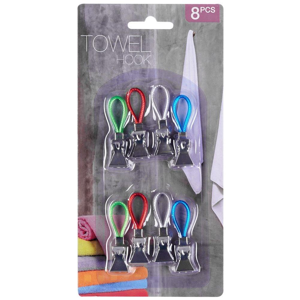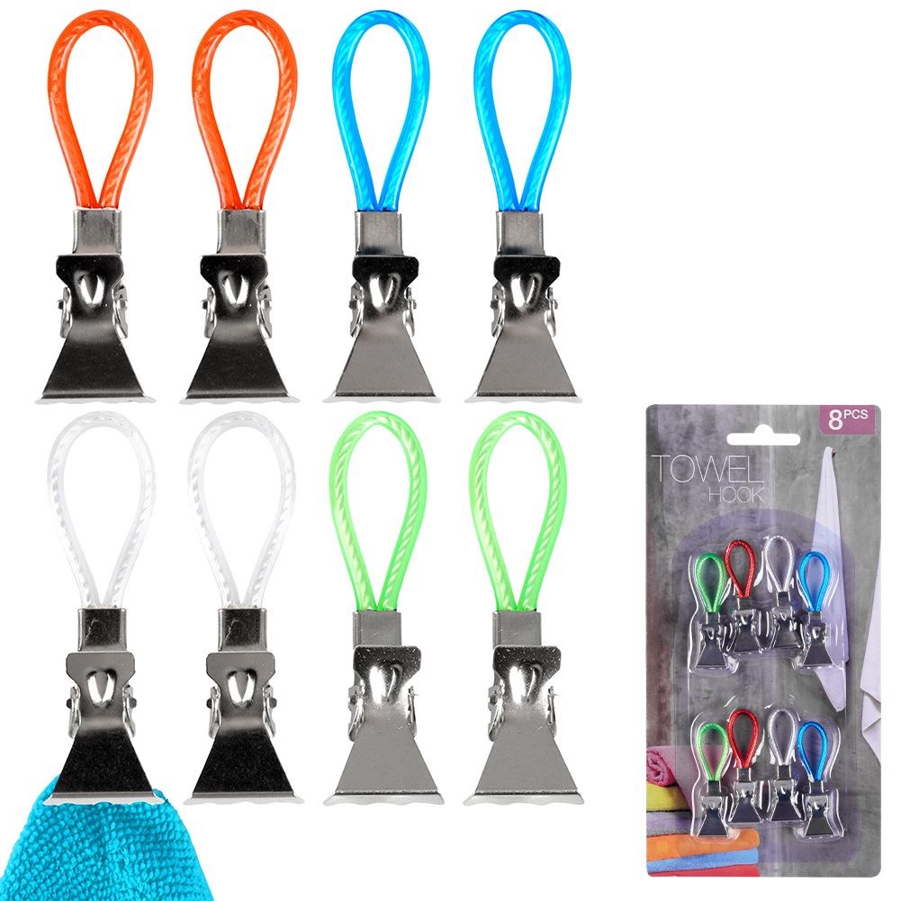 A set of 8 practical clips for hanging towels or cloths. Hooks will work well in both the bathroom and the kitchen.