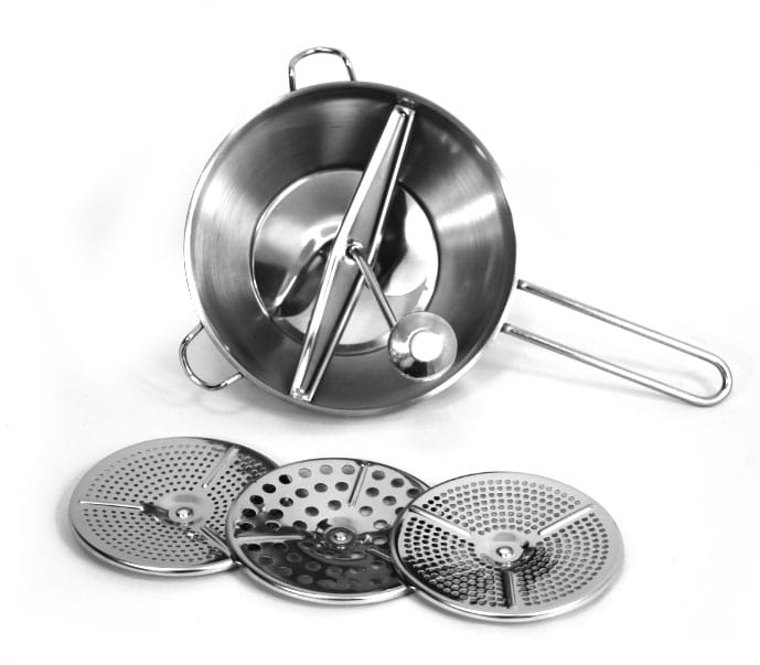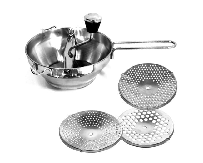 The puréeer is equipped with three interchangeable sieves, which allow food to be puréed into masses of varying degrees of smoothness.