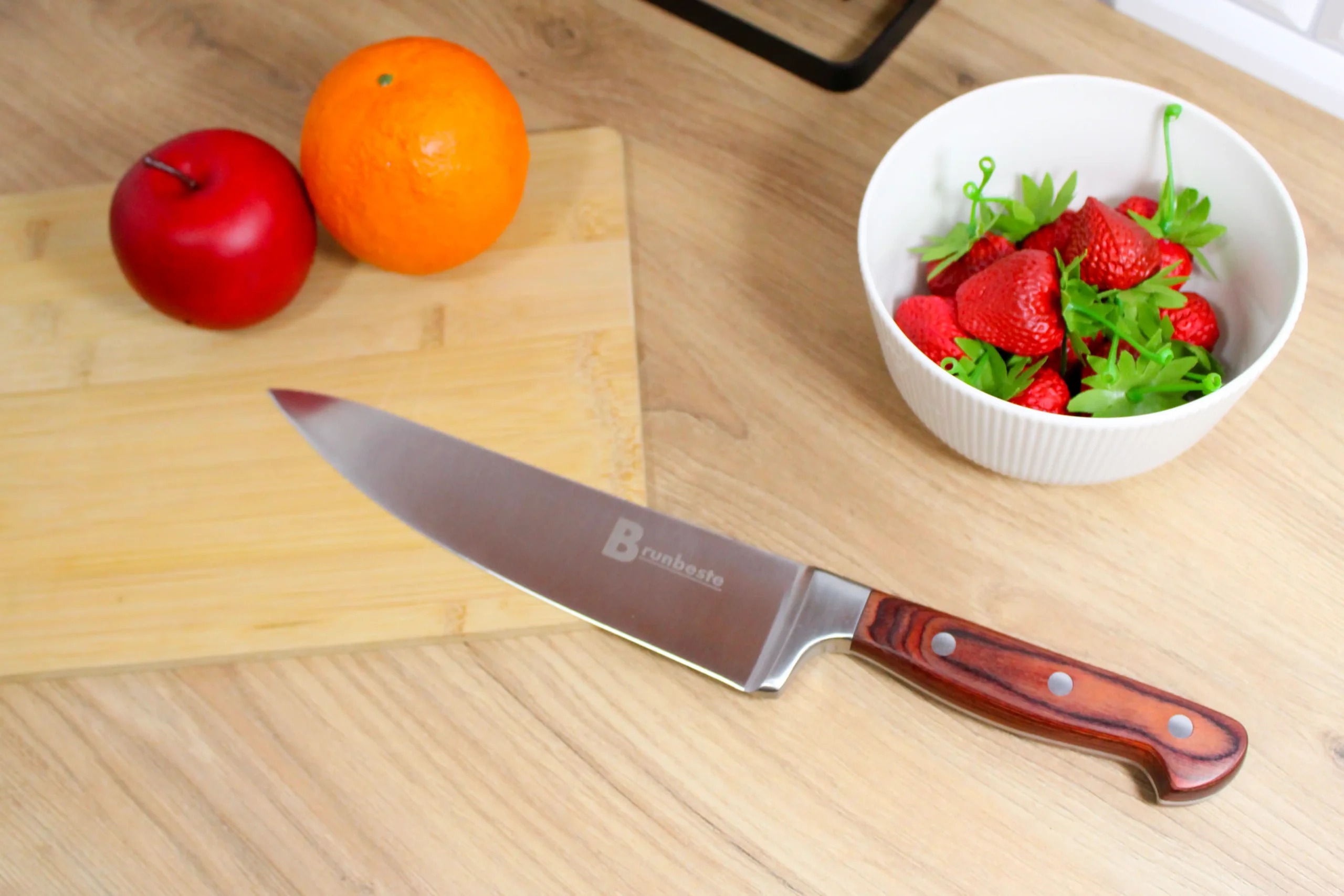 The Brunbeste kitchen knife is the perfect combination of style, functionality and durability. Order today and enjoy perfectly cutting every ingredient in your kitchen!