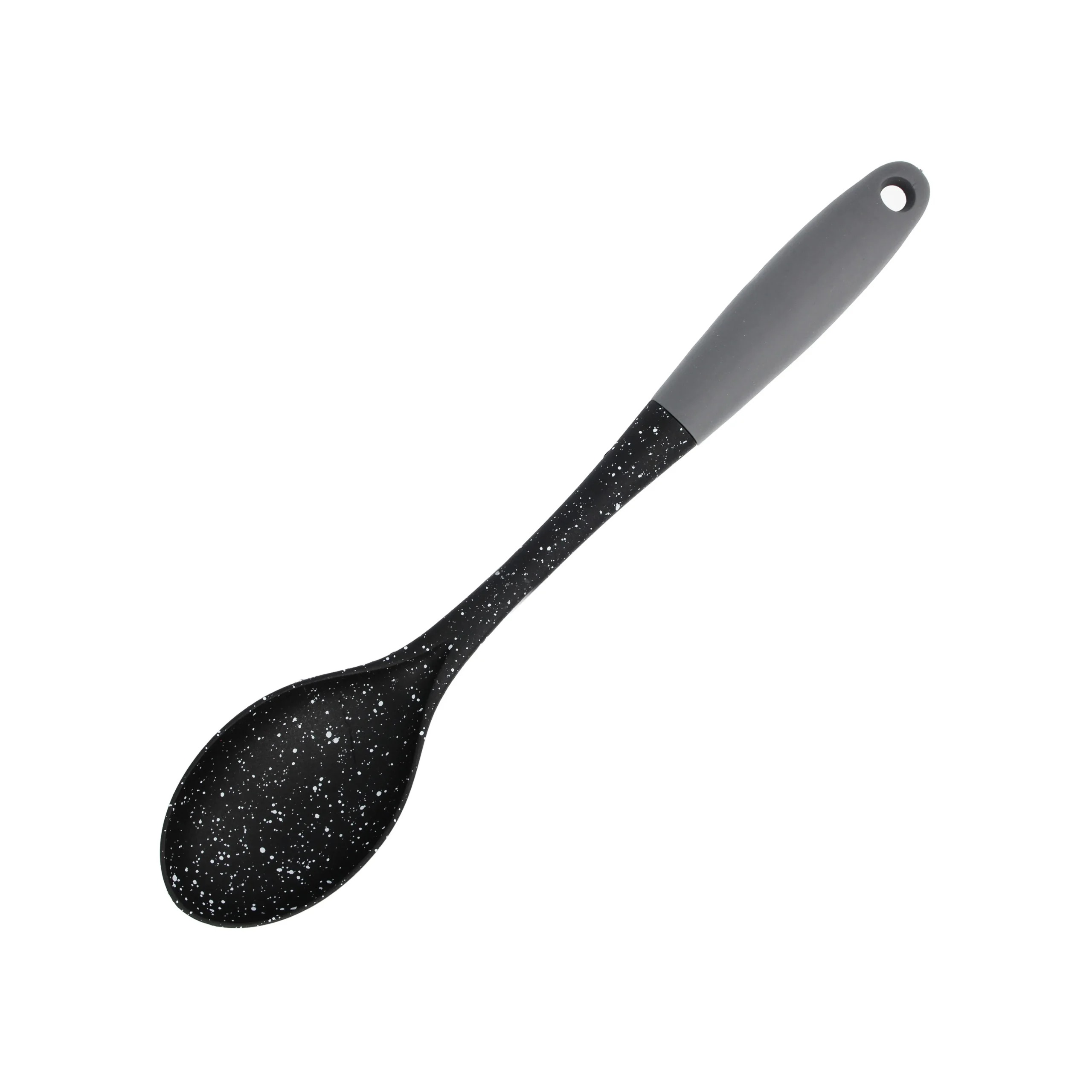The Brunbeste kitchen spoon was created with everyday use in mind - it combines durability, functionality and aesthetic design. Thanks to high-quality materials and resistance to high temperatures, it is perfect for cooking sauces, mixing or transferring hot ingredients. Neutral colors (gray, black) combined with a finish imitating speckled marble match most kitchen compositions.