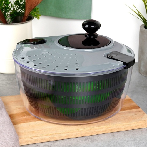 Practical wiring for lettuce and other vegetables or fruits. Thanks to the centrifuge you will quickly prepare your favorite salads. Driven by hand using a crank in the cover.