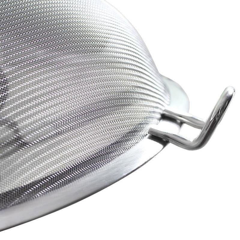 Equipped with a long and ergonomic handle and two hooks that enable stable positioning of the strainer on the vessel.