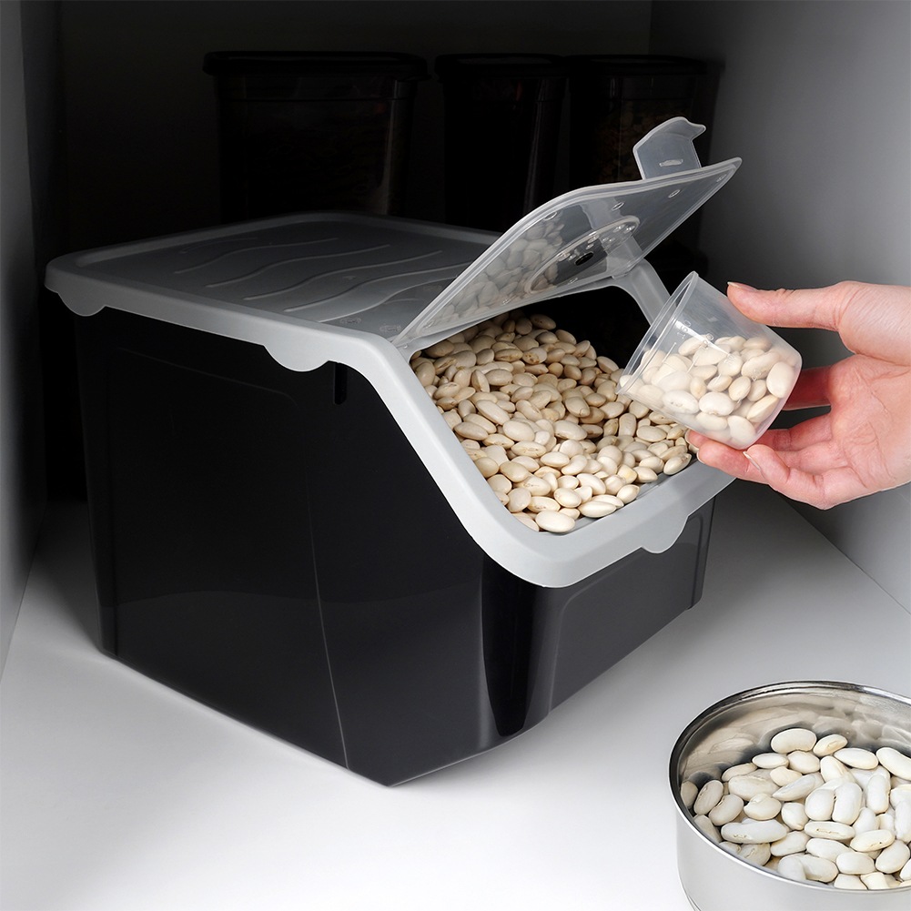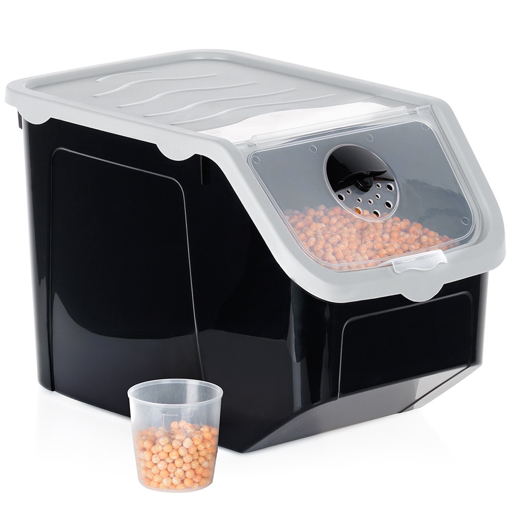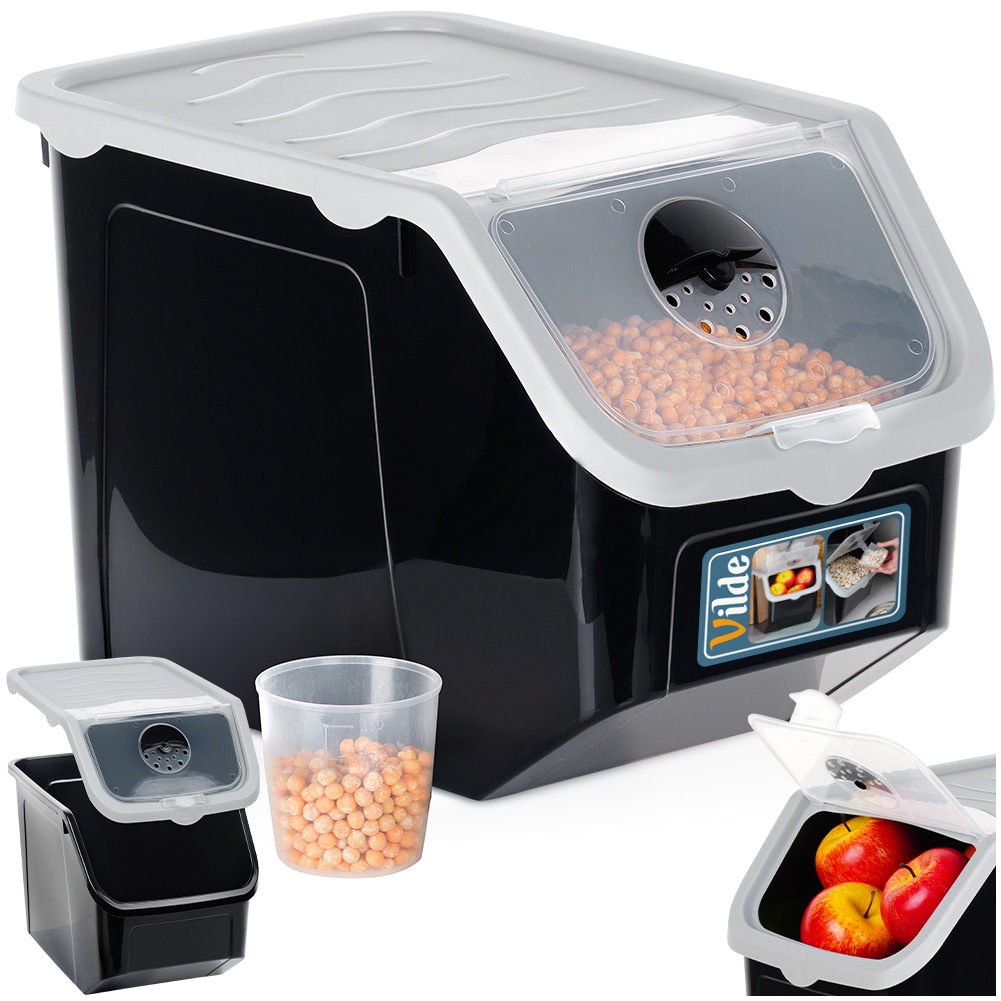 - Practical storage container- Practical container for storing vegetables and fruits. It is great for onions, potatoes, garlic, but also for animal food or powder. Included with a measuring measure. The container has dimensions of 33 x 23.5 x 23.5 cm and a capacity of 12 l.