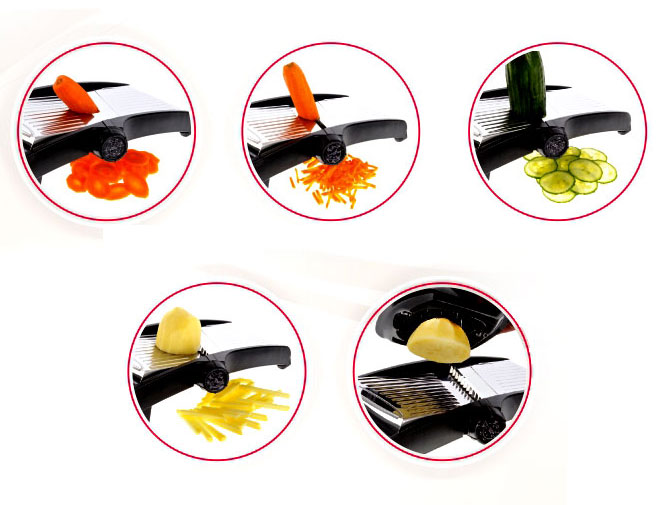• Five cutting options, strips, slices and wavy shapes