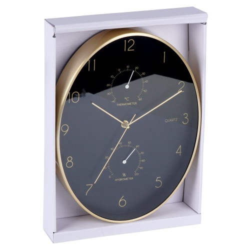 Black gold wall clock with thermometer and hygrometer 27x34.5 cm VILDE