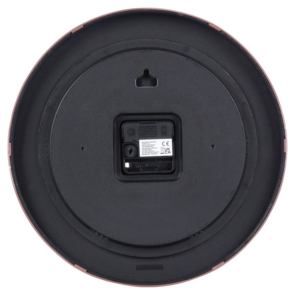 - WALL- An impressive wall clock in a round shape with a diameter of 30 cm. An original decoration for a living room or office. The thickness of the clock is 4.5 cm. The clock is powered by 1x AA 1.5V (not included).