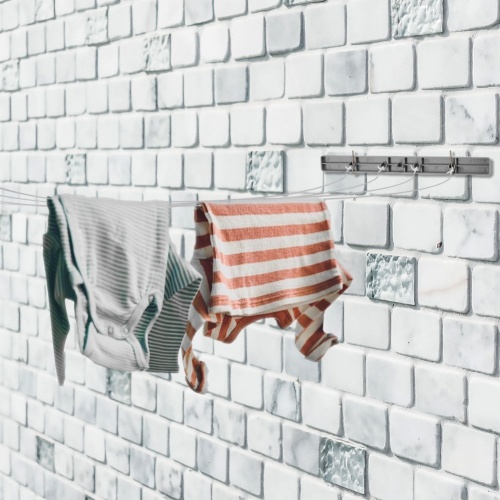 - PRACTICAL- Retractable laundry dryer with four lines with a total length of up to 14 meters.
