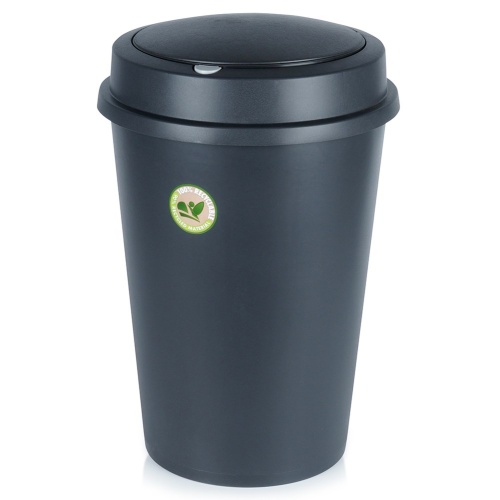 Waste bin with a capacity of 47 liters. Made of durable black plastic. Equipped with a lid that opens in two ways, which makes it easier to dispose of waste.