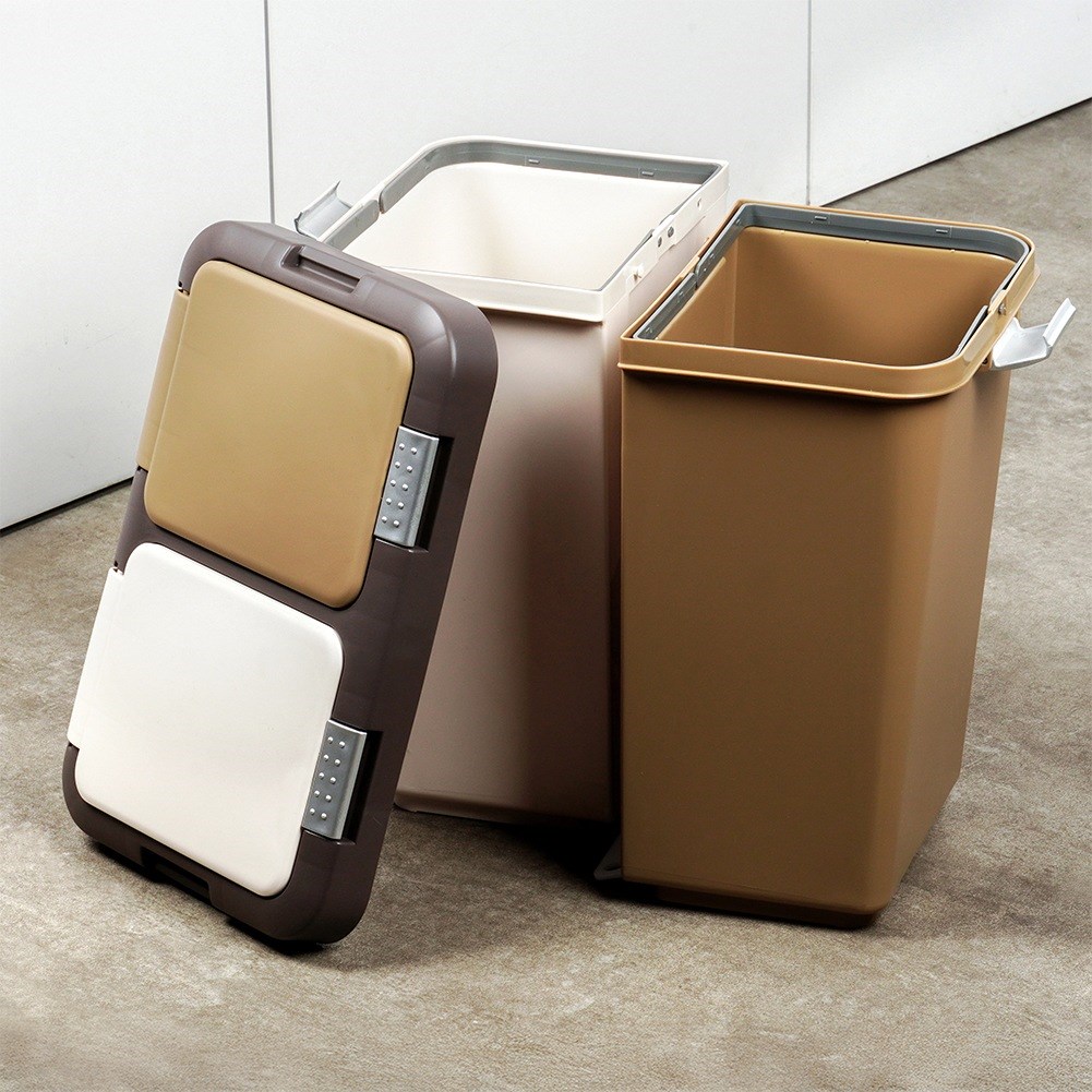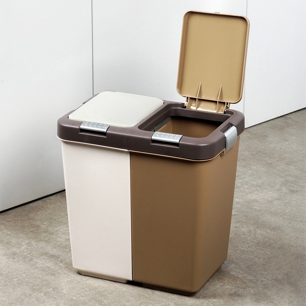 - DOUBLE- The waste segregation bin has two independent chambers with covers. The total dimensions of the basket are 24 x 37 x 37 cm. Each basket has a capacity of 10 liters, which gives a total capacity of 20 liters.