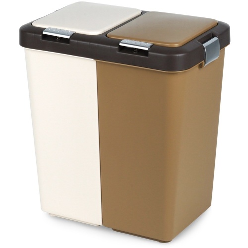 Waste sorting bin with two independent chambers with a capacity of 20 liters. Practical opening of the lid using the "click" button.