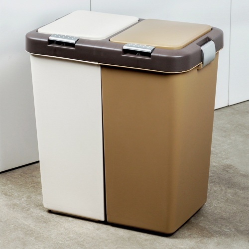 - DOUBLE- The waste segregation bin has two independent chambers with covers. The total dimensions of the basket are 28.5 x 45 x 49 cm. Each basket has a capacity of 20 liters, which gives a total capacity of 40 liters.