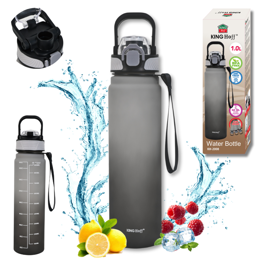 The KINGHOFF KH-2008 water bottle is a modern and practical 1 litre bottle, designed for daily hydration at work, school, training and on the go. The ergonomic shape fits well in the hand and the matt finish gives it a modern, sporty look.