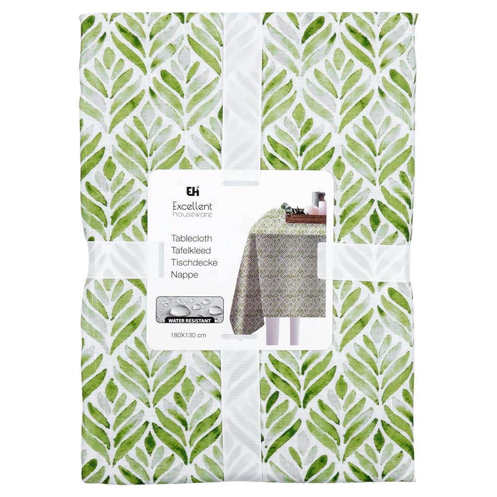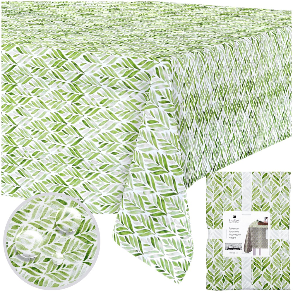 - Durable and dirt-resistant- Tablecloth made of polyester, white with green leaves. Practical for everyday use and perfect for special occasions.