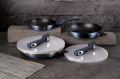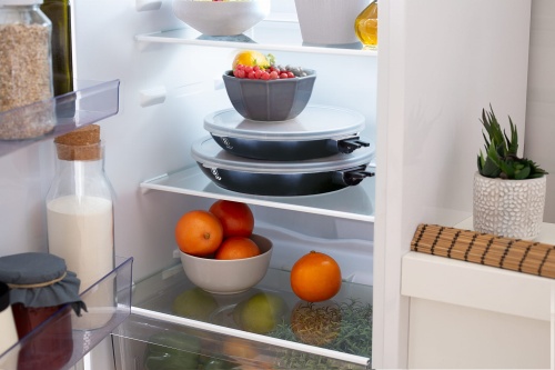 - W zestawie dodatkowe pokrywki z tworzywa sztucznego ułatwiające przechowywanie gotowych potraw bezpośrednio w naczyniach.