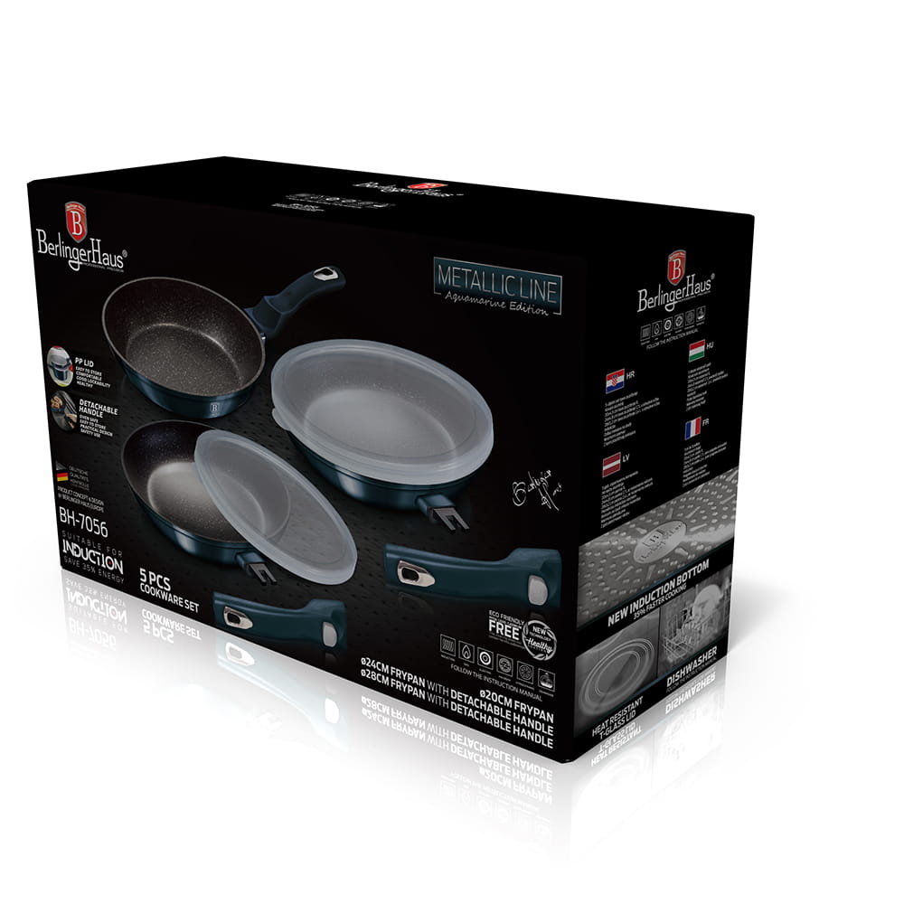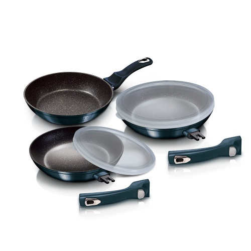 Zestaw 3 patelni granitowych Ø20cm/Ø24cm/Ø28cm BERLINGER HAUS z serii METALLIC LINE - AQUAMARINE