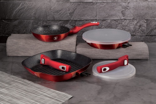 Zestaw 3 patelni granitowych Ø20cm/Ø24cm/28cm BERLINGER HAUS z serii METALLIC LINE - BURGUNDY