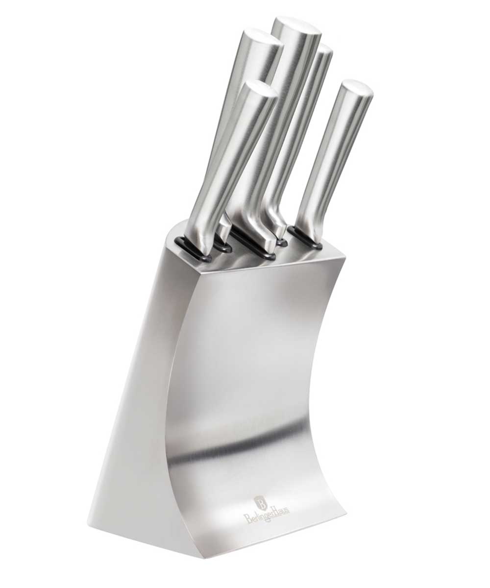 6 elementowy zestaw noży na stojaku ze stali szlachetnej firmy BERLINGER HAUS z serii BLACK ROYAL.