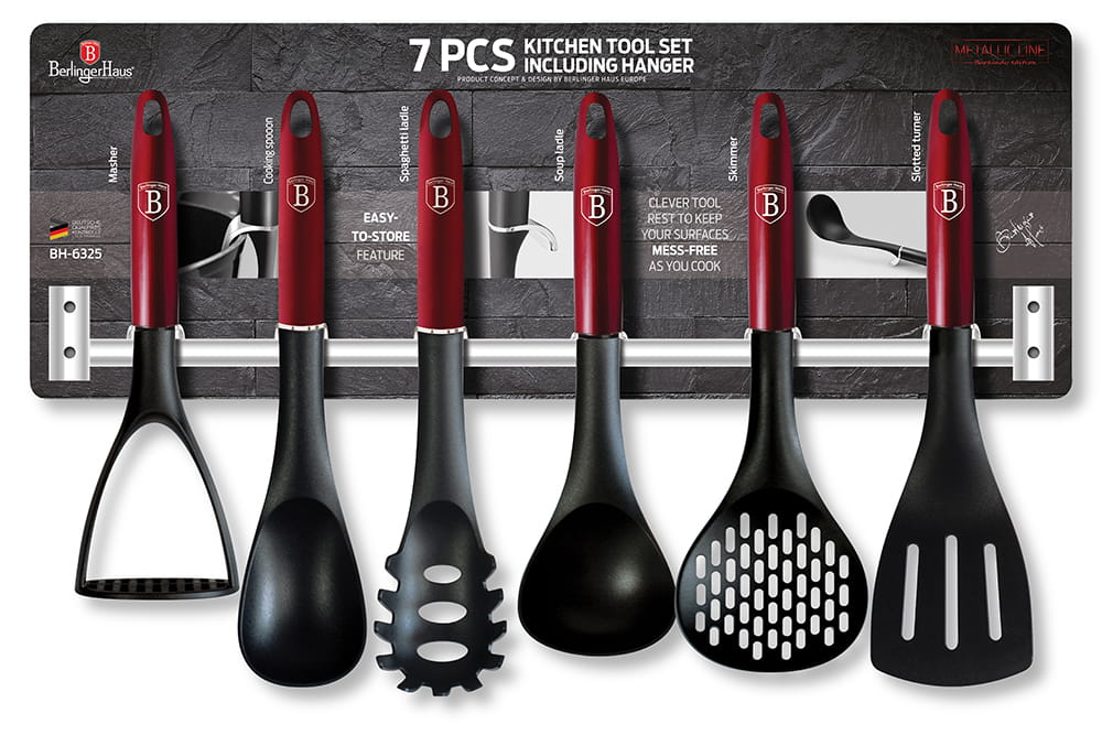Zestaw nylonowych przyborów kuchennych (7 elementów) firmy BERLINGER HAUS z serii BURGUNDY.