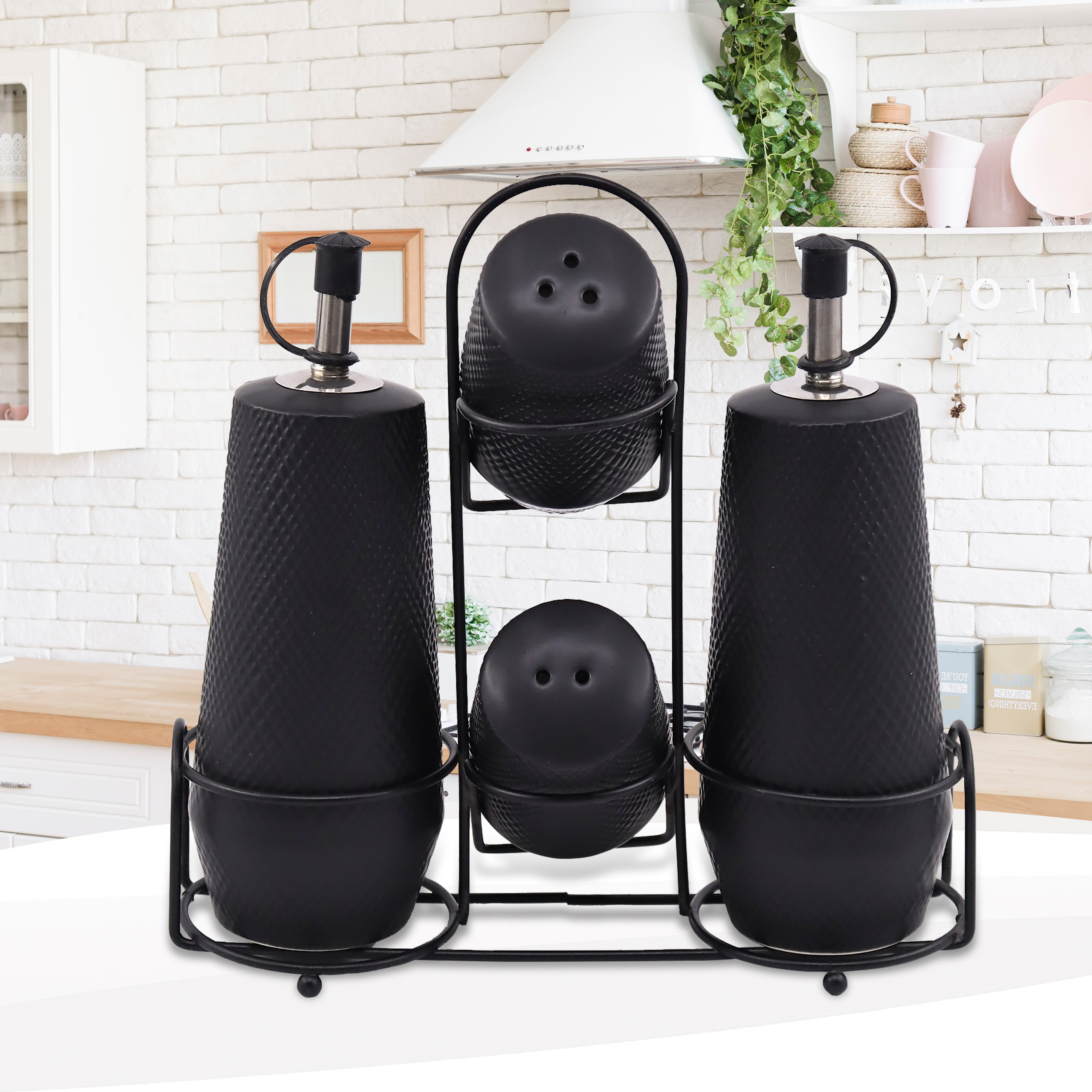Zorganizuj swoją kuchnię w stylowy sposób dzięki praktycznemu 5-elementowemu zestawowi ceramicznemu MAESTRO. Wykonany z wysokiej jakości ceramiki komplet doskonale łączy estetykę z codzienną wygodą użytkowania. Całość uzupełnia stabilny i nowoczesny metalowy stojak, który doda charakteru każdej kuchni.