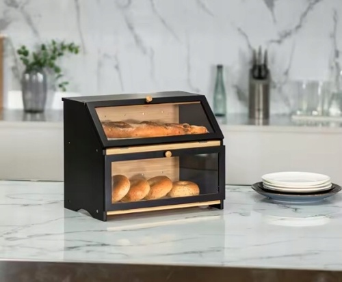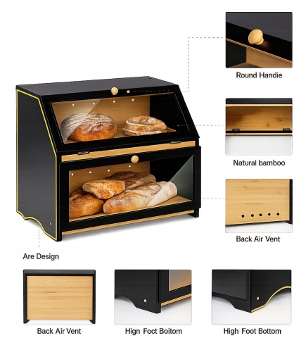 Chlebak Bambusowy 2-Poziomowy Pojemnik Na Pieczywo czarny KRISBERG KS-7727