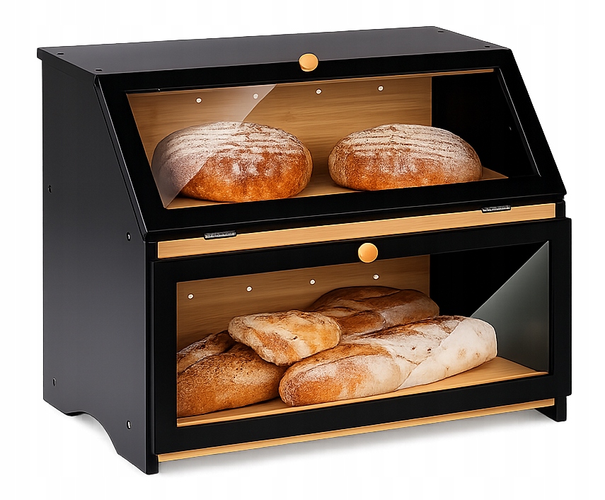 Dzięki dwupoziomowej konstrukcji, z łatwością przechowasz różne rodzaje pieczywa – od chleba po bułki i bagietki – zachowując ich świeżość na dłużej.