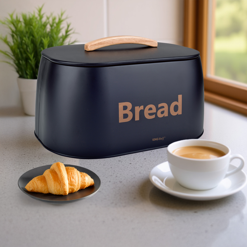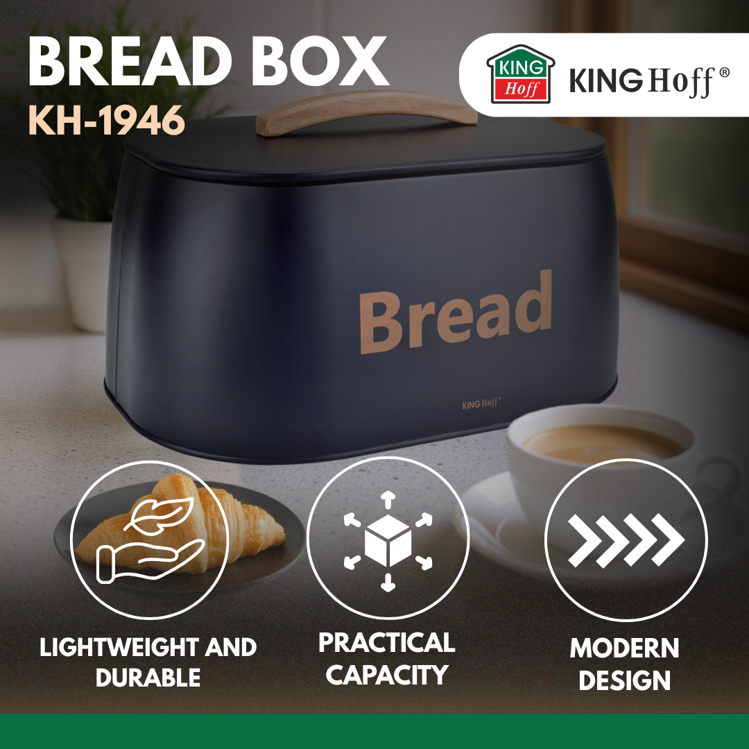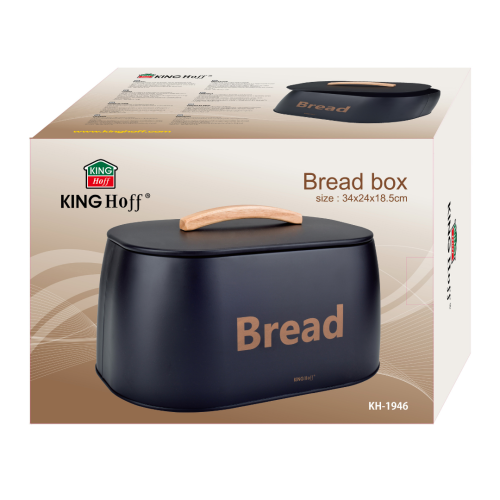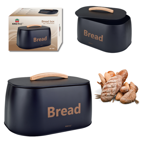 Chlebak stalowy, drewniany uchwyt, 34x24x18,5cm, czarny, KINGHOFF KH-1946