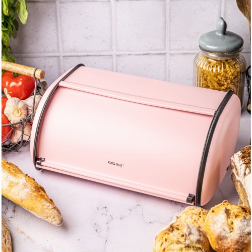 Chlebak stalowy duży 44cm matowy różowy KINGHOFF KH-1868