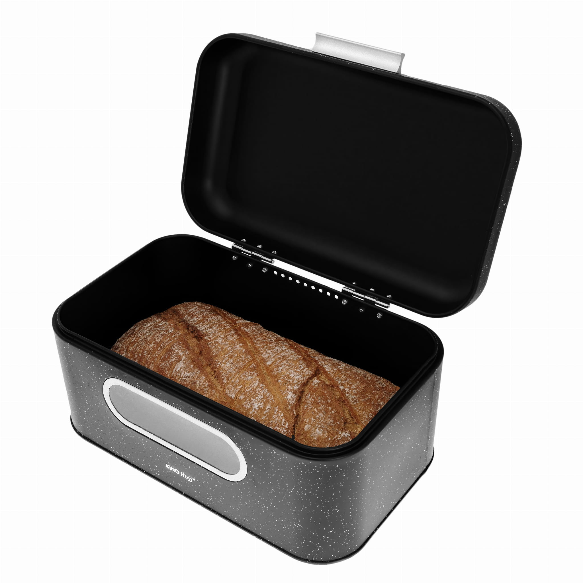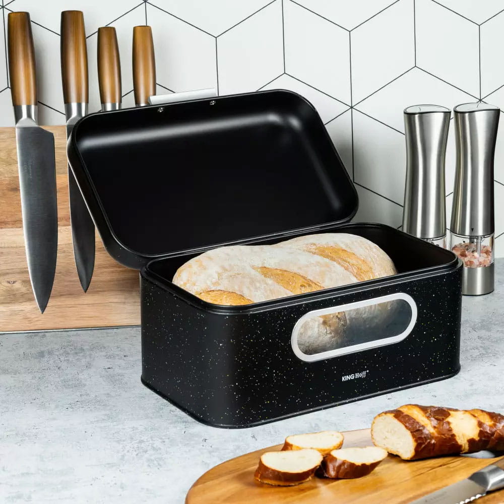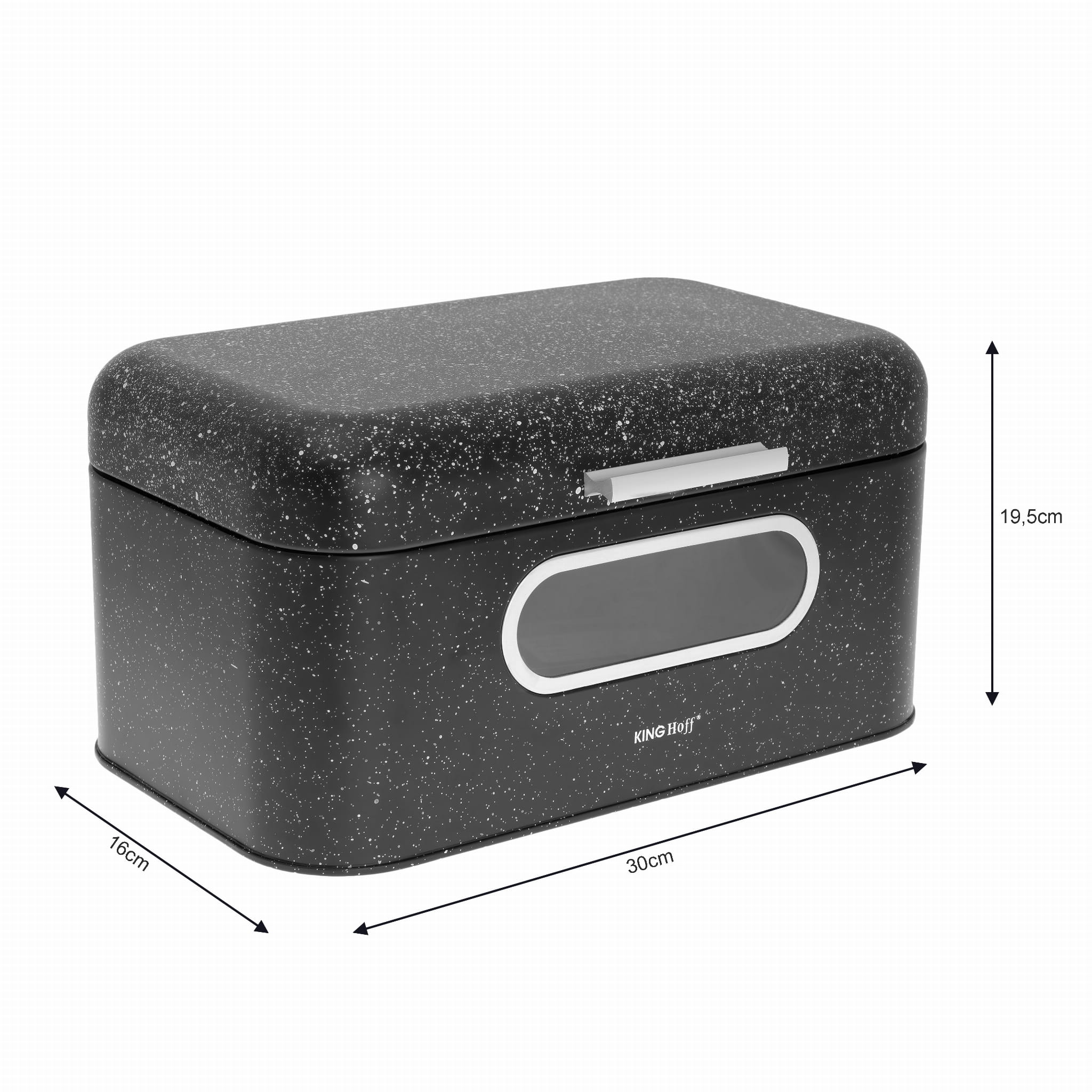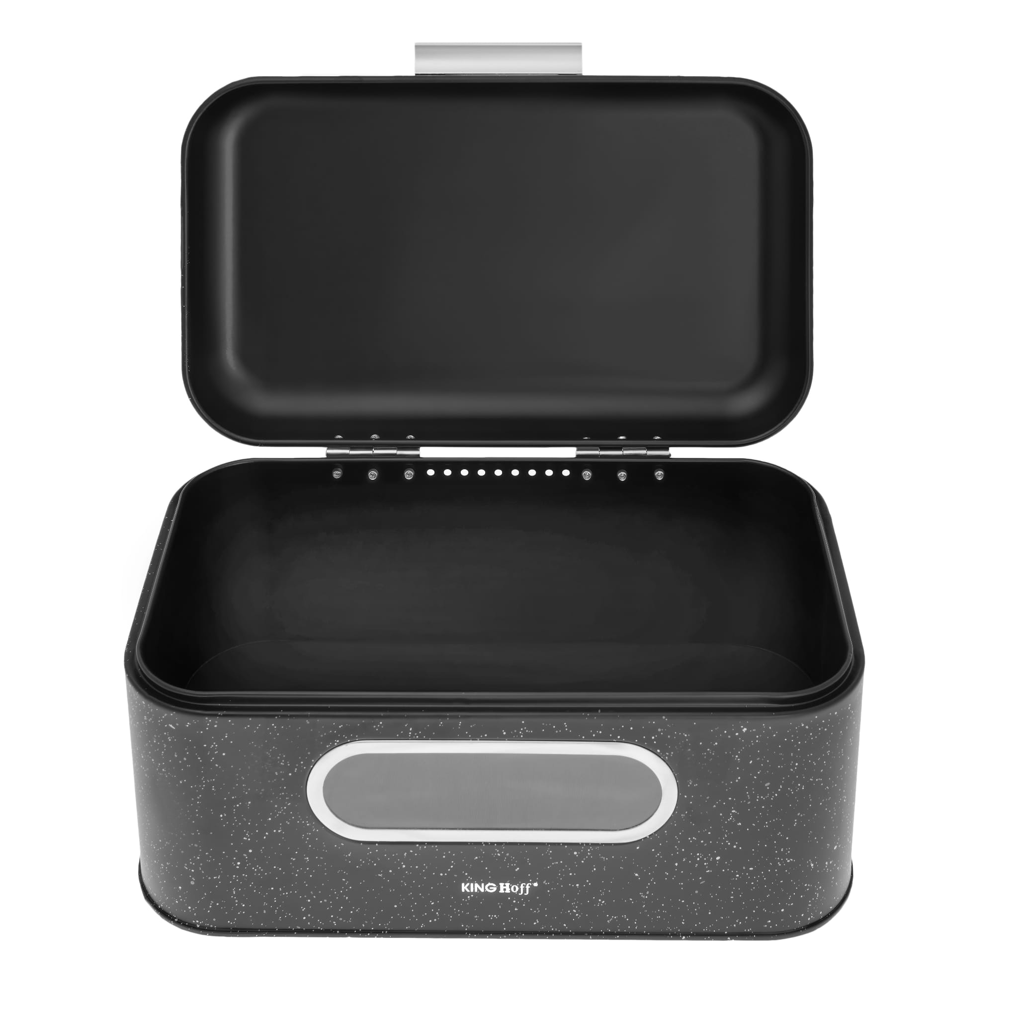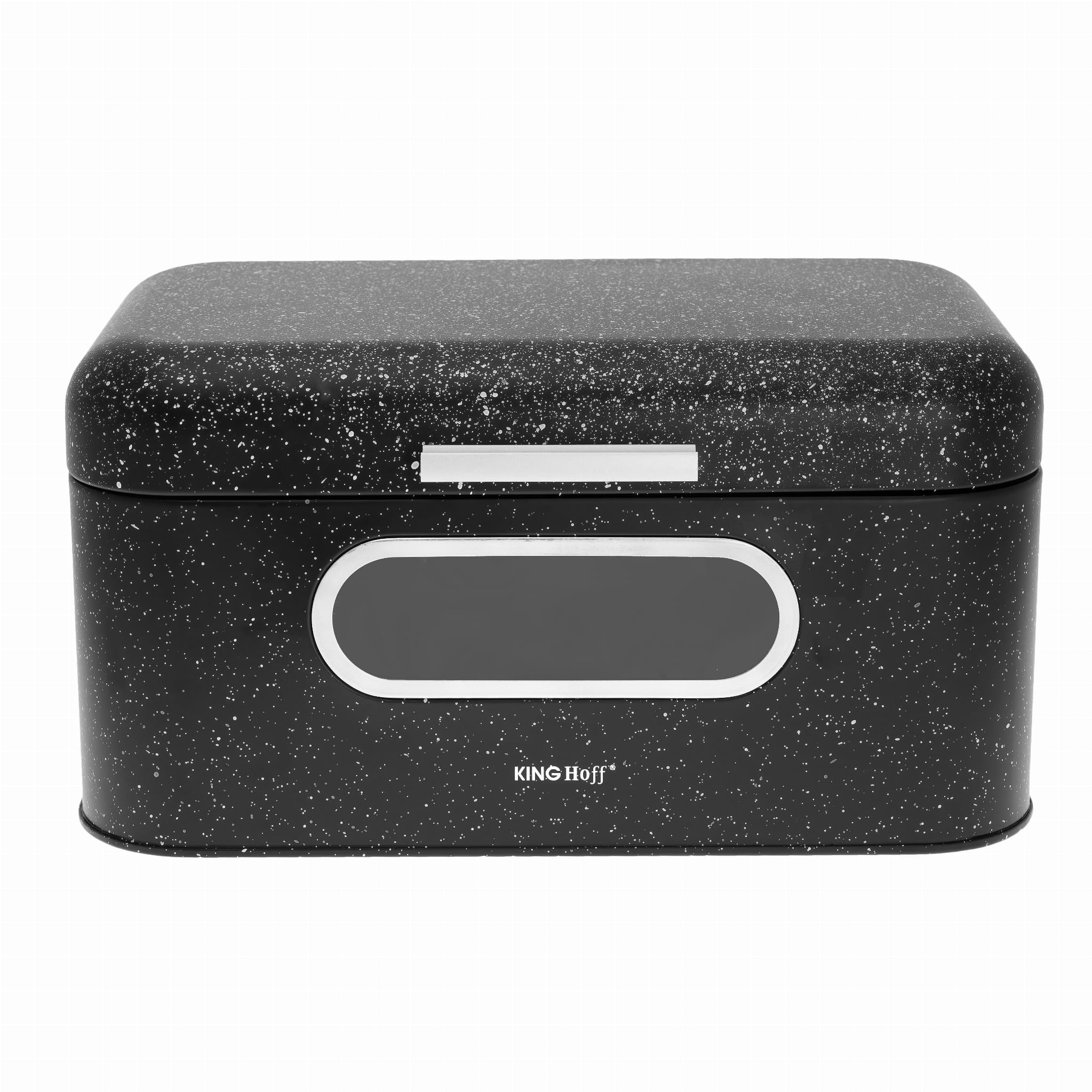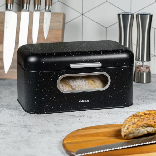 Chlebak stalowy KINGHOFF pokryty emalią o strukturze marmurkowej w kolorze czarnym.