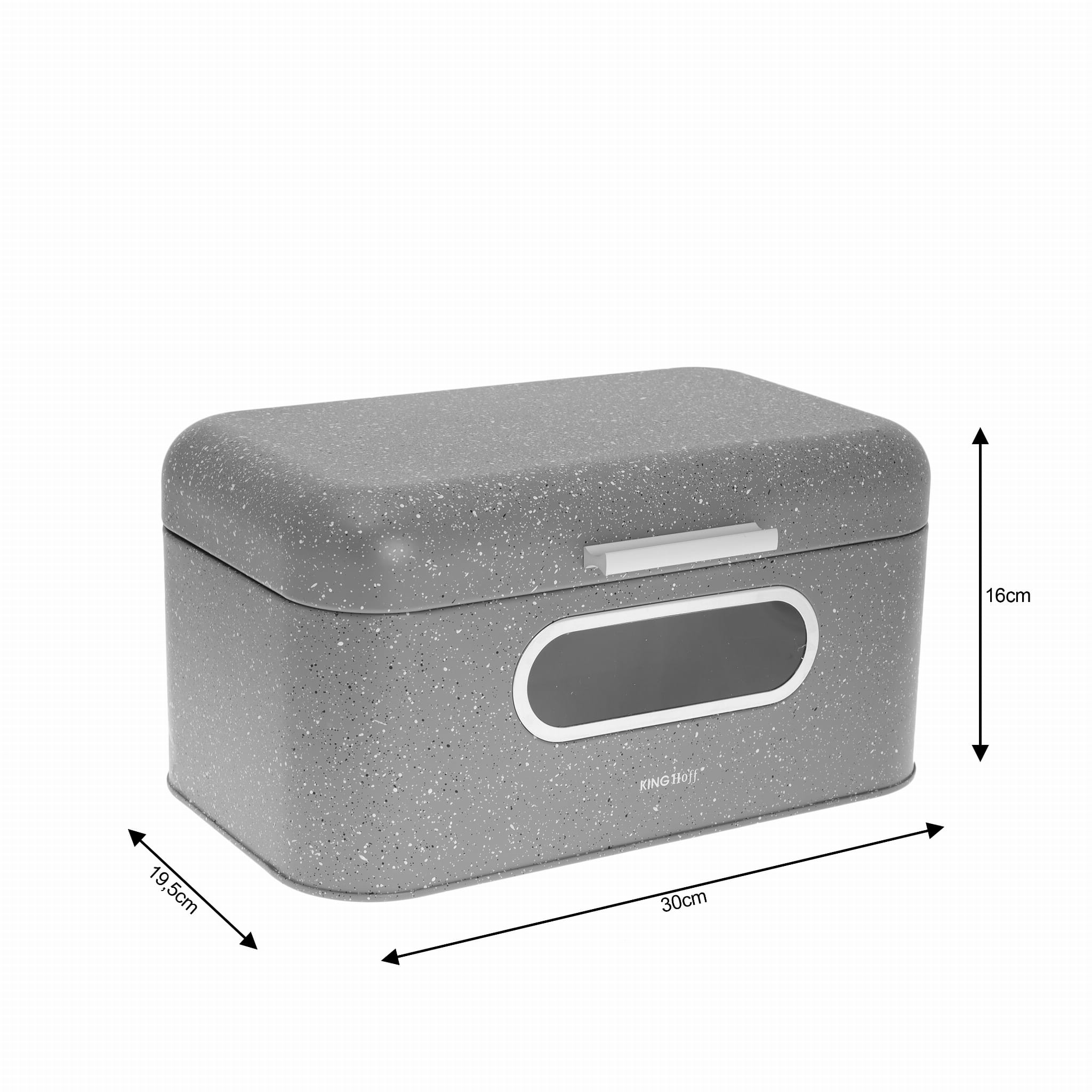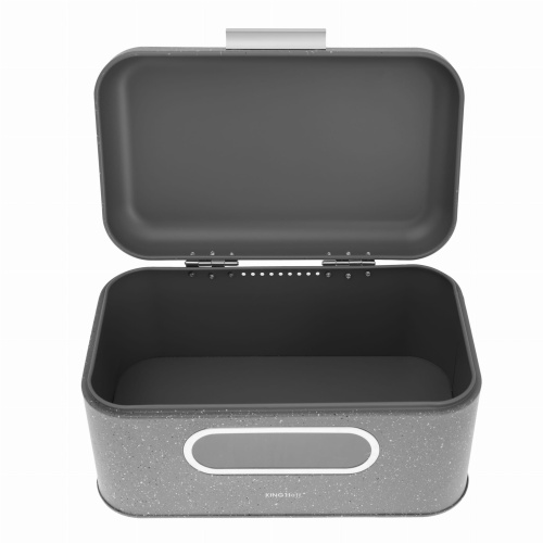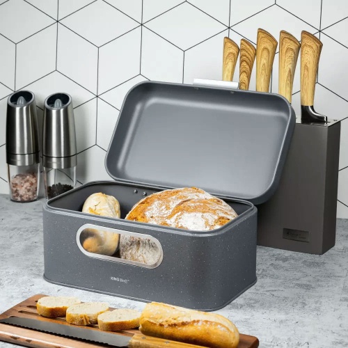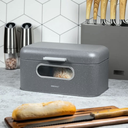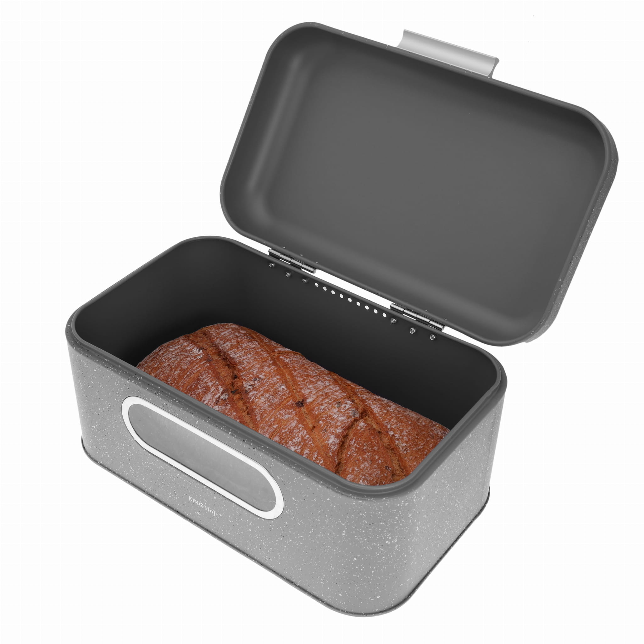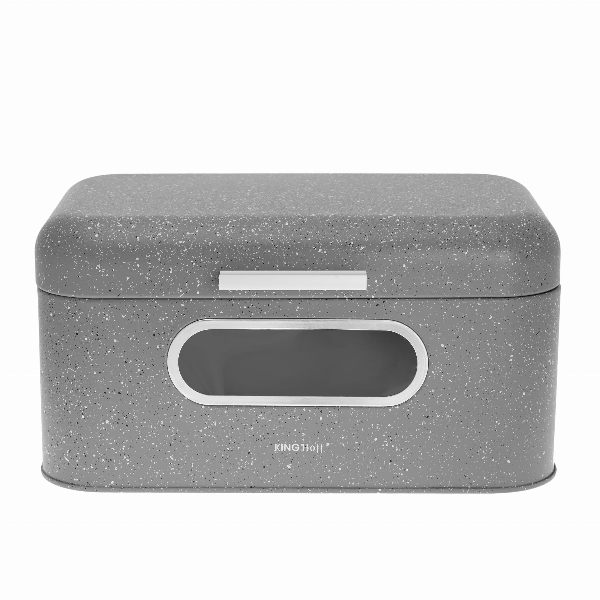 Chlebak stalowy KINGHOFF pokryty emalią o strukturze marmurkowej w kolorze szarym.