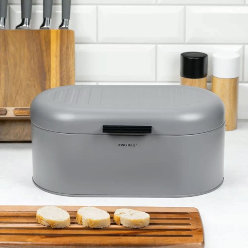 Chlebak stalowy firmy KINGHOFF. Pojemnik na pieczywo oprócz funkcji praktycznych, jest też ciekawą ozdobą wnętrza. Chlebak charakteryzuje się wyjątkowym wzornictwem.