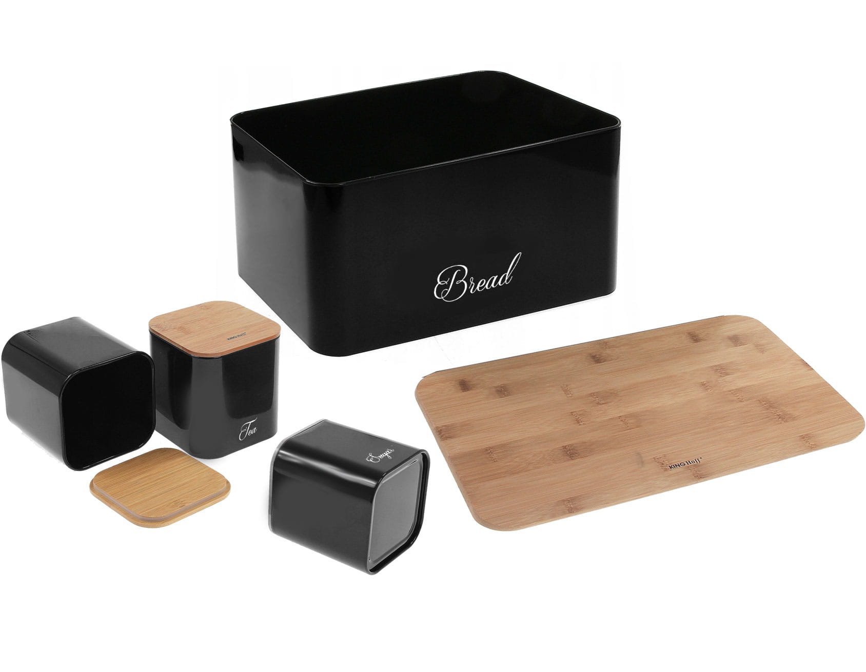 Zestaw w którego skład wchodzi chlebak oraz 3 pojemniki firmy KINGHOFF.