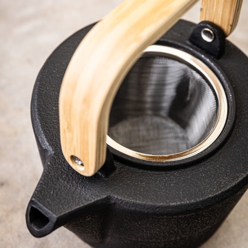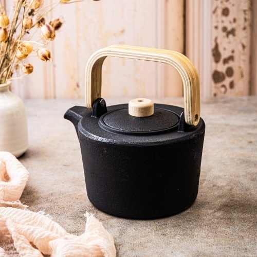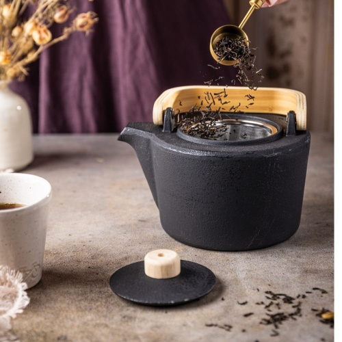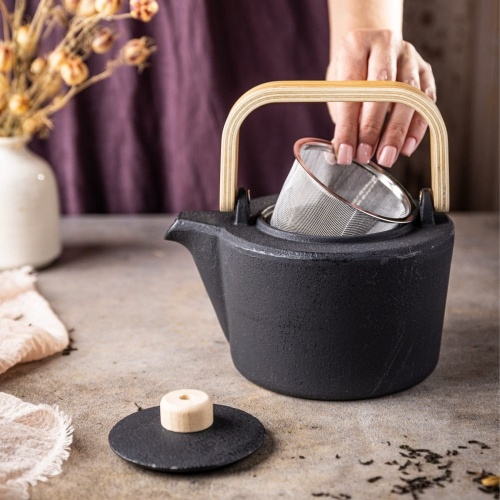Czajniczek żeliwny, zaparzacz do herbaty i ziół 1300ml z drewnianym uchwytem KINGHOFF.
