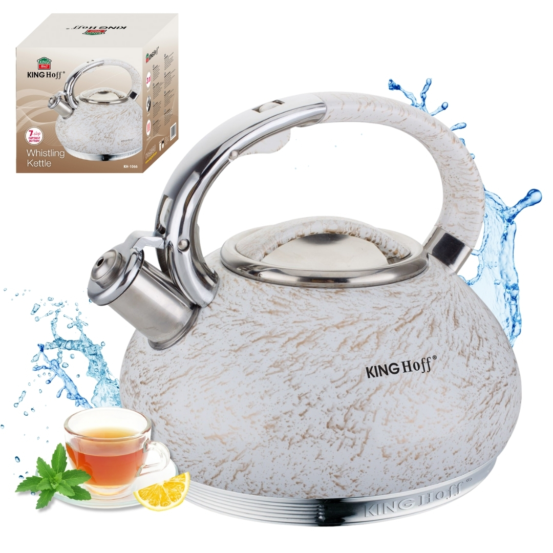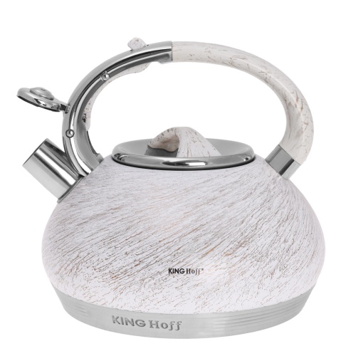 Czajnik z gwizdkiem 3.0L KINGHOFF wykonany z wysokiej jakości stali nierdzewnej 18/10 pokrytej lakierem akrylowym.