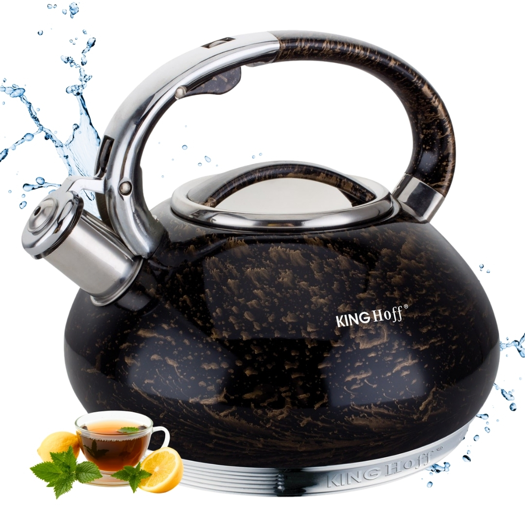 Czajnik z gwizdkiem 3.0L KINGHOFF wykonany z wysokiej jakości stali nierdzewnej 18/10 pokrytej lakierem akrylowym.