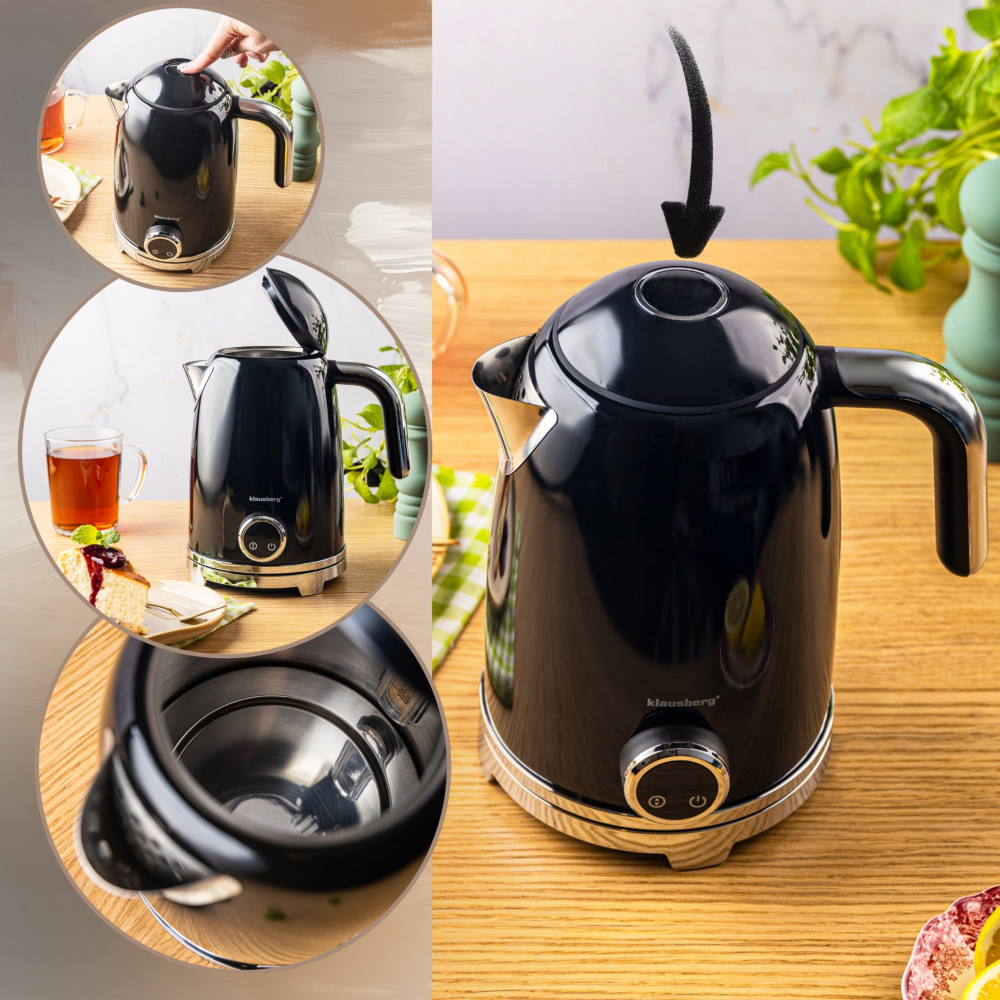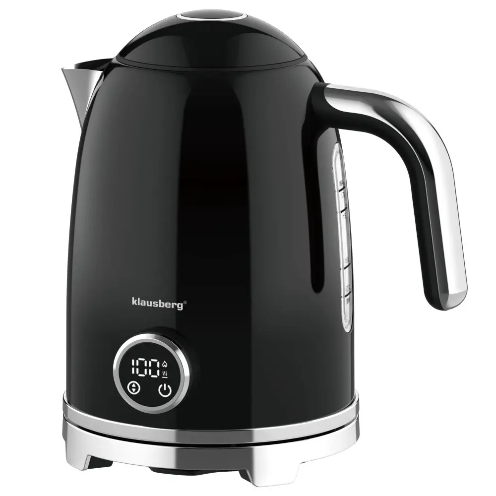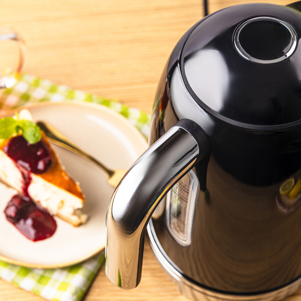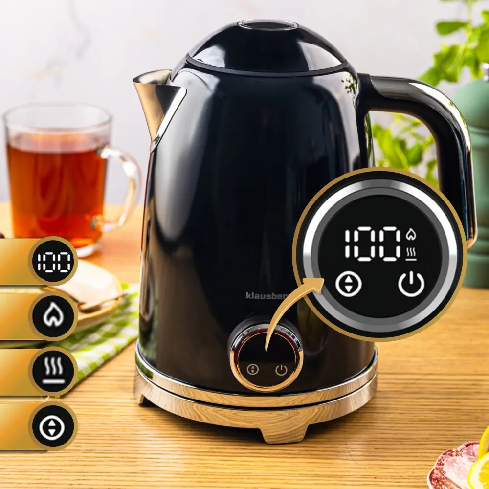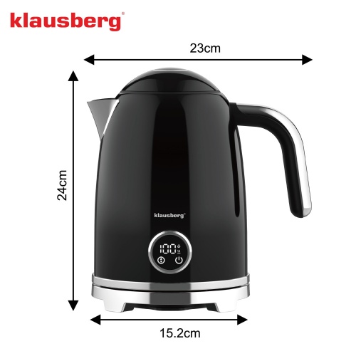 Czajnik elektryczny z termometrem retro, panel LED, czarny, 1,7l KLAUSBERG KB-9027