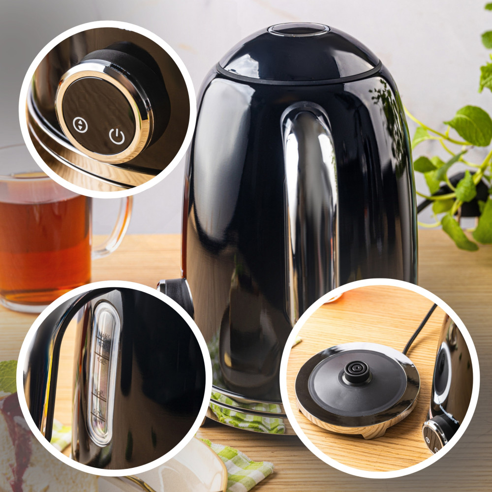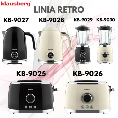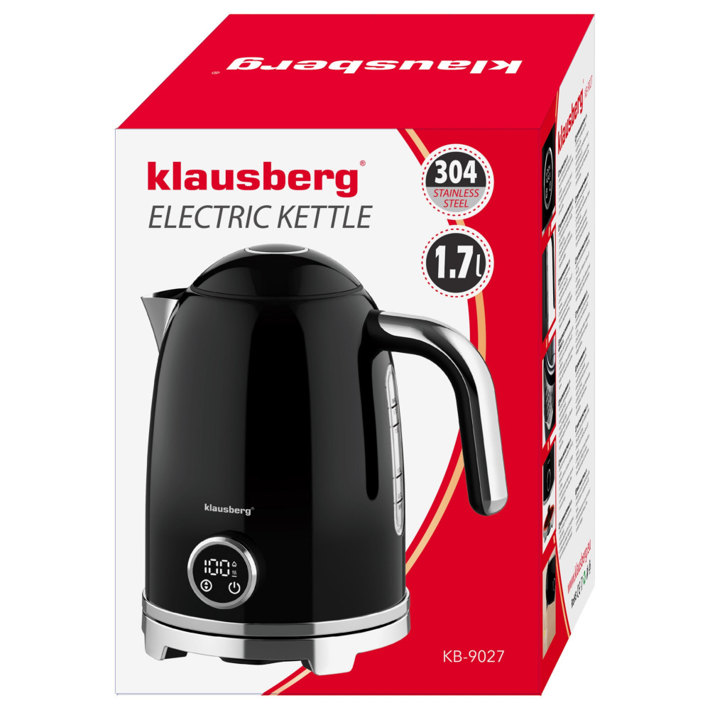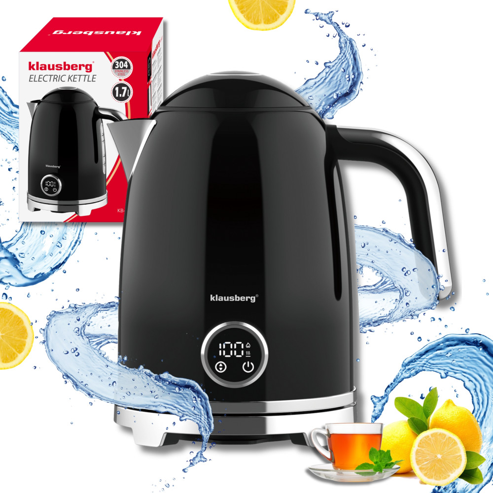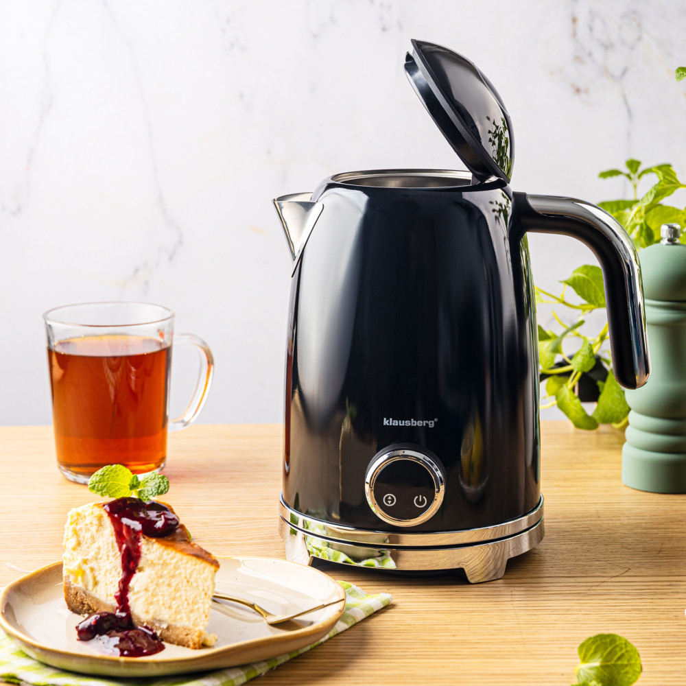 Czajnik elektryczny z termometrem retro, panel LED, czarny, 1,7l KLAUSBERG KB-9027