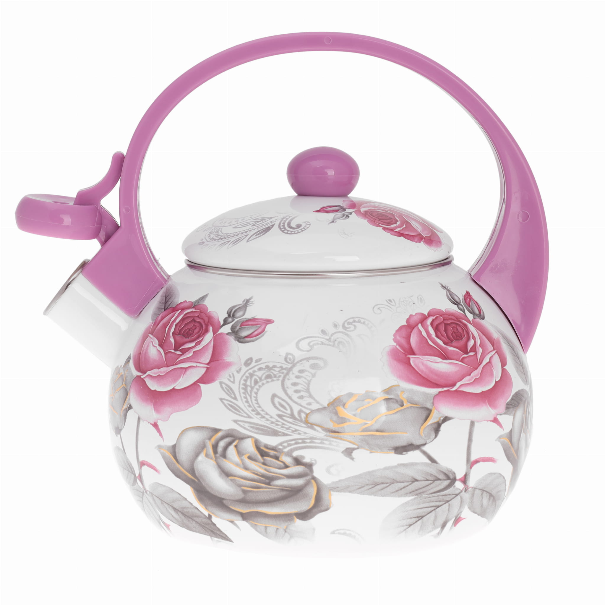 Czajnik emaliowany 2L marki KINGHOFF wzór różowe i szare róże – elegancja i funkcjonalność w Twojej kuchni