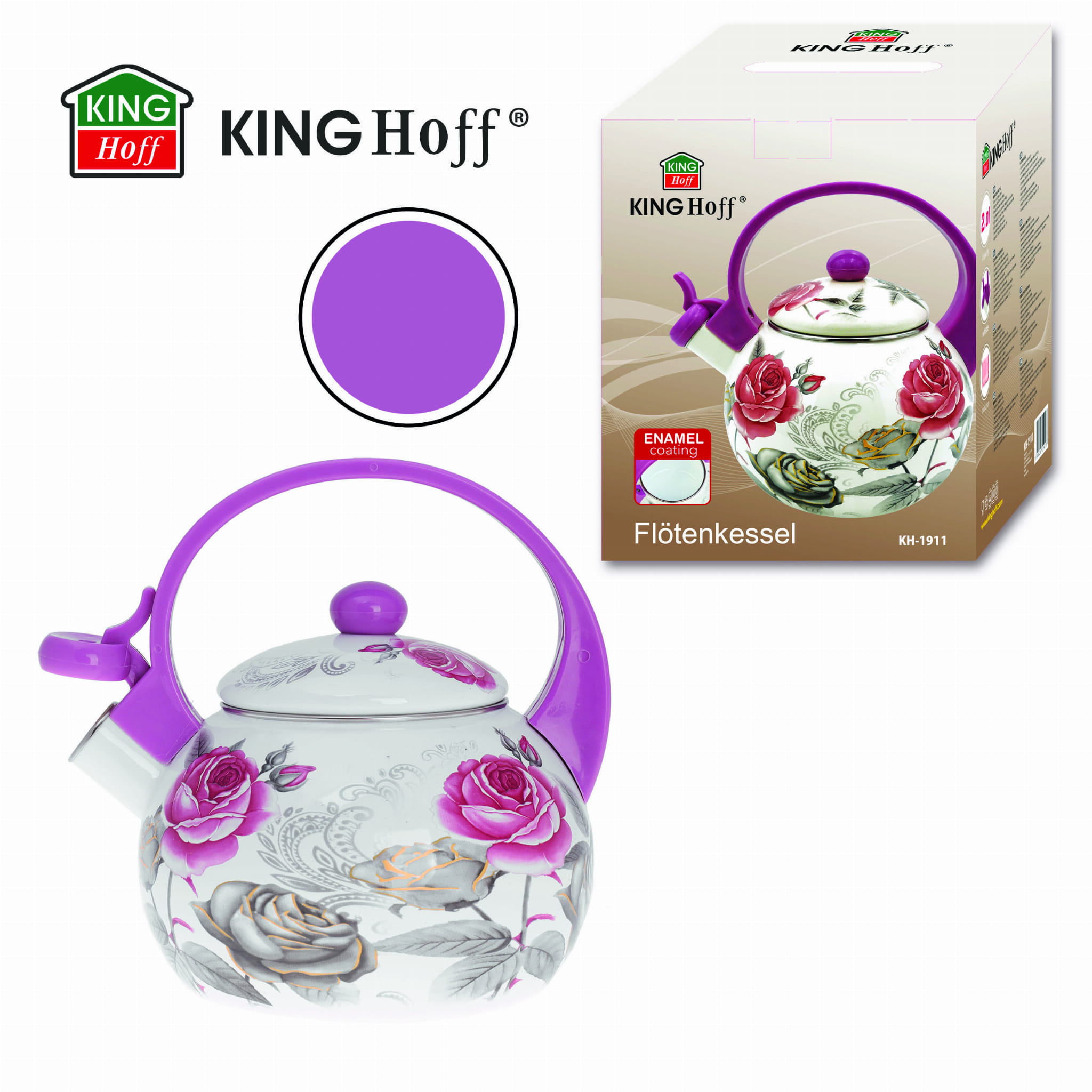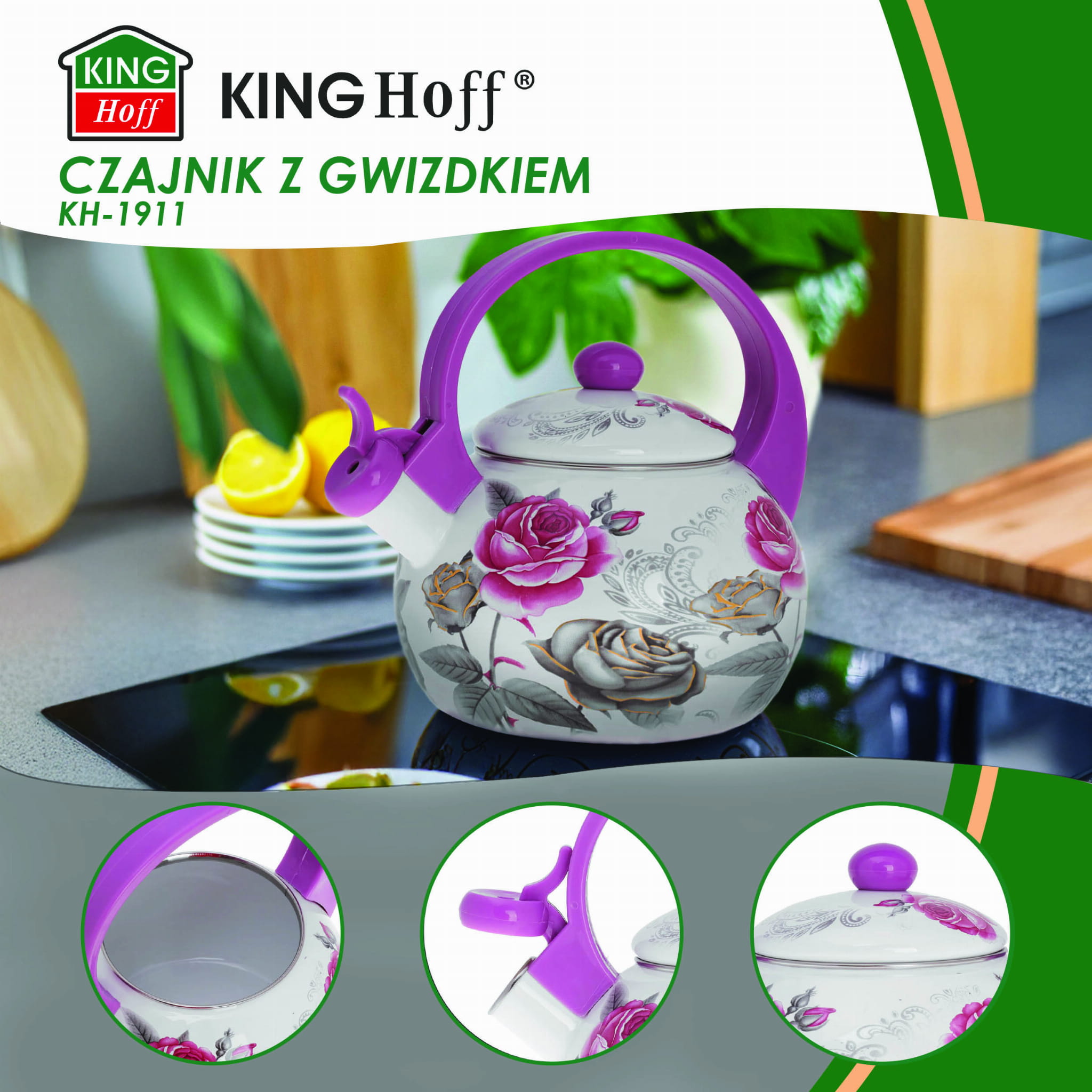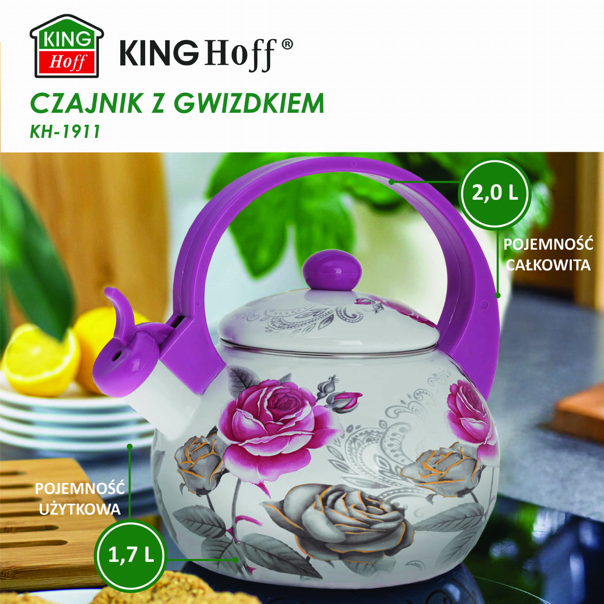 Czajnik emaliowany 2.0L emalia na indukcję gaz KINGHOFF ROSE KH-1911